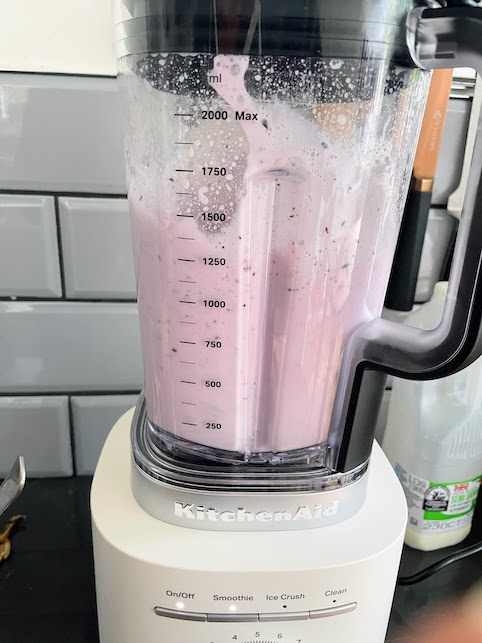 On the original blenders the spinny roundy bit with the 360° asymmetric blades could be taken out for a deep clean, on this model it’s fixed in place but KitchenAid have an answer for that. A Clean Cycle sets the machine to create a turbulence that drives soapy water all around and under the blades to dislodge any lingering bits of food. It works very well.