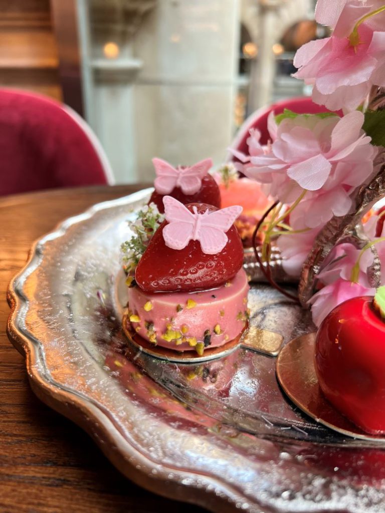 Paired with Jing loose-leaf teas, a glass of Hattingley English Sparkling Wine or R De Ruinart Champagne, at £42 with tea, £52 with sparkling wine, or £57 with champagne.