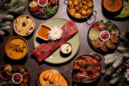 Vegetarians can indulge in dishes such as Dal Chawal Arancini, Paneer Angara Tikka, and Nargisi Kofta, Saag Korma (mozarella stuffed root veg dumplings with spinach korma). For those adding dessert, highlights include the Xmas Brownie & Grilled Marshmallow and the warming Fig & Ginger Pudding.