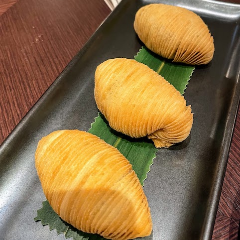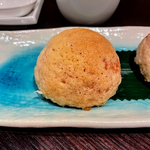 Luxury comes in the crispy shape of Wagyu Beef Puffs. The exterior is remarkable, a lattice of puff pastry carefully deep fried to perfection with not a hint of over browning. It’s so friable it dissolves in the mouth and leaves behind the sauteed wagyu in the house sauce. Delicious all the way to the end. I didn’t need the napalm level chili sauce on the side, but a little anointing with soy sauce worked well.