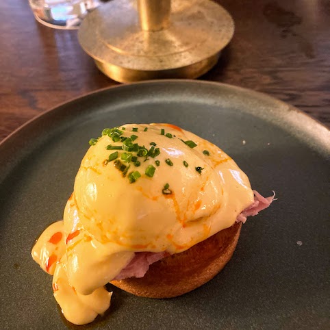 The short menu created by Engel chefs Samantha Williams and Lorena Tomassi is very attractive. To start we have classic Eggs Benedict with Brunswick ham (or you can have smoked salmon) on an English muffin with hollandaise sauce and smoked paprika oil.