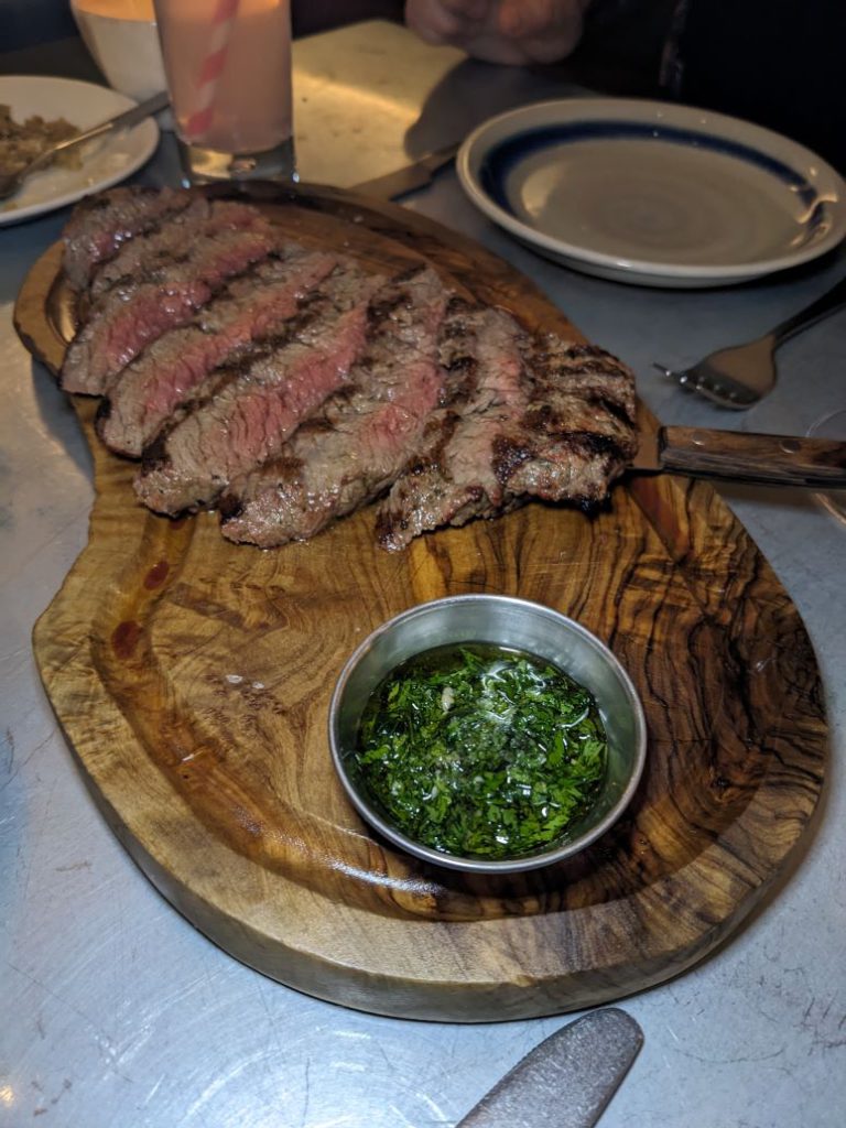 It’s a great portion to share with no fat rim but prepared on the charcoal so it has a good char to it, while remaining perfectly tender inside.