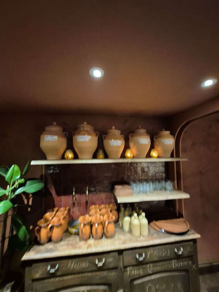 They are our first cocktails on order. The pottery around the bar is more than decorative, the pots are used to impact on the flavour of macerations through primitive ageing techniques.