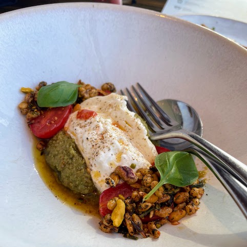 The burrata is good too, we like the granola idea, the crunch works well against the cheese’s creaminess, and the Caesar salad has dressing that’s spot on and the snow drift of grated Parmesan is generous. It’s impressive at any level (geddit?).