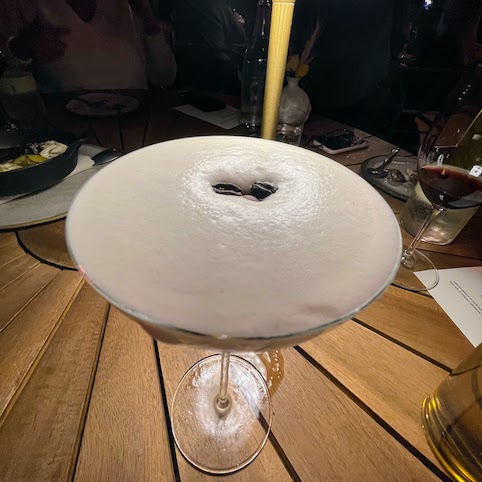 We managed to still eat Greek walnut cake, or karydopita, with creme fraiche before washing it down with Aegina, a crazily creamy vodka cocktail bursting with Greek yoghurt foam.