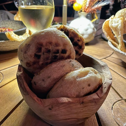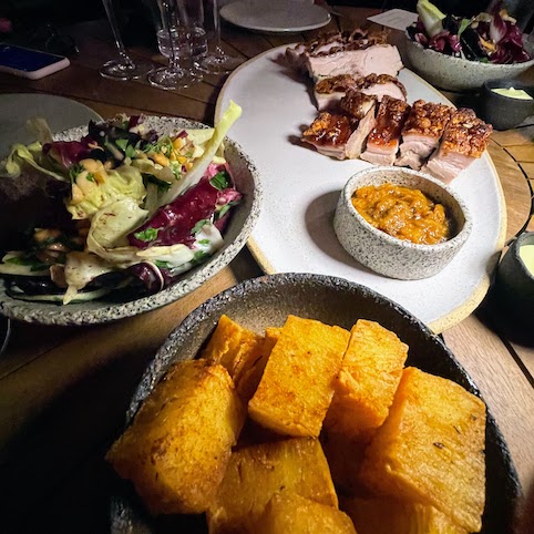 At Pyro every Wednesday from now and going forward, it’s the Pig Panigyri Feast, a Greek village festival. Inspired by Gournopoula, the Messinian tradition of roasting suckling pig over an open fire.It’’s a set menu designed to be shared with friends, although couples can also enjoy it just as much. We actually sat with two strangers and it couldn’t have been nicer, as we bonded over crackling, pork fat and Greek wine and the terrace filled up with other pork afficianados.